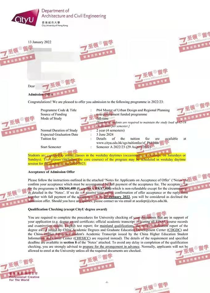 录取结果:香港城市大学,Master of Urban Design and Regional Planning城市设计与规划硕士录取