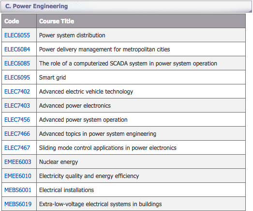 MSc(Eng) in EEE有三个分支:General Stream(都学), Communications Engineering(通信工程), Power Engineering(电力/动力工程)。