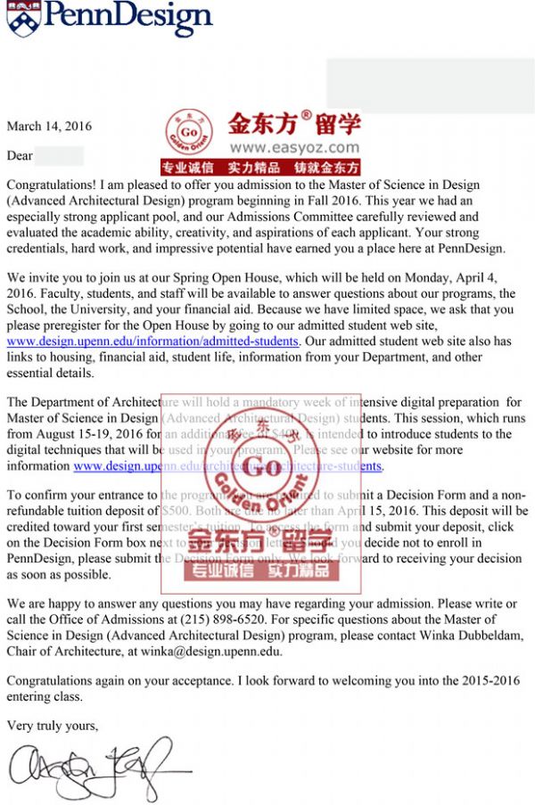 心想事成-宾夕法尼亚大学建筑学硕士成功录取!