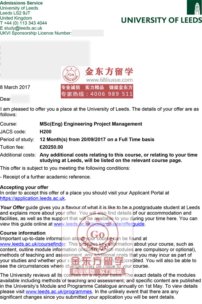 成绩不好我们就将突破点放在了对马同学文书材料的包装上。文书中重点强调了学生本科课程中有大量的专业相关课程,而且专业课的成绩还是不错的,这对于硕士的学习打下了坚实坚础,让学校看到学生身上的闪光点。经过黄老师的一番精心包装制作,马同学真的收获了利兹大学寄来的OFFER。