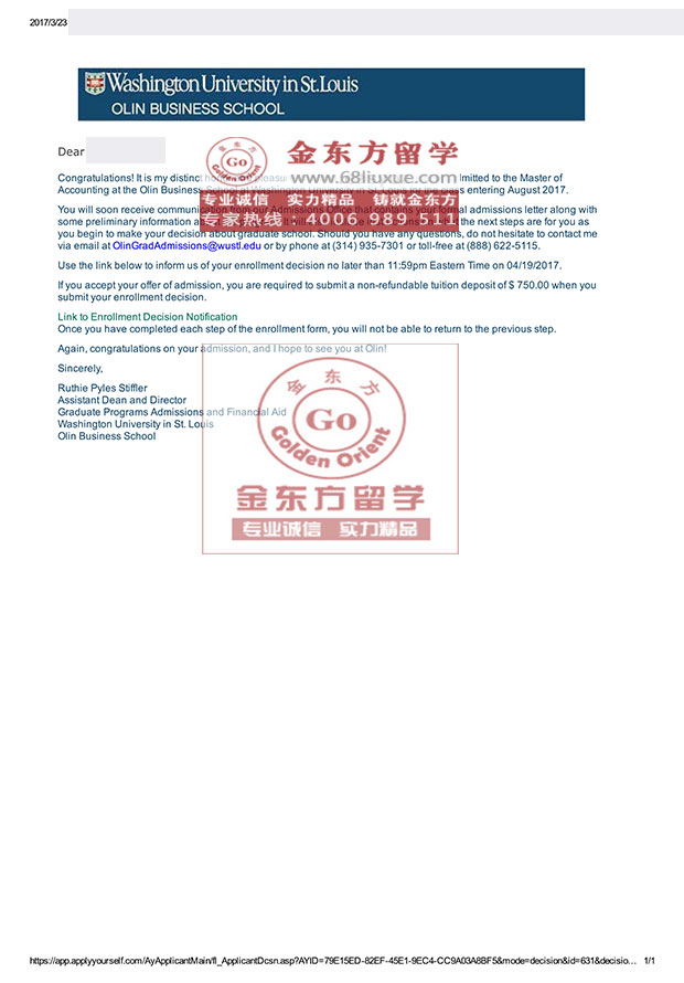 录取结果:Washington University in St. Louis圣路易斯华盛顿大学,Master of Accounting会计硕士