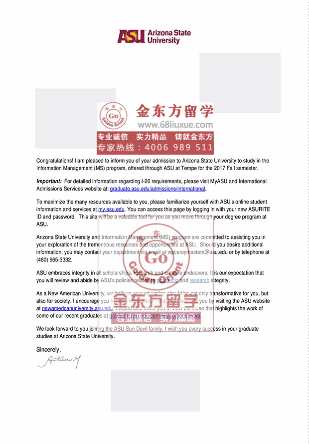 录取结果:Arizona State University亚利桑那州立大学, Master of Science in Information Management 信息系统管理硕士