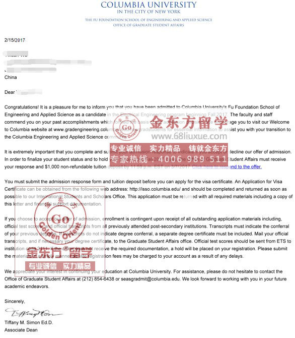 在相互信任的基础之上,马同学与金东方留学老师们的默契配合,申请过程非常的顺利,在2017年的二月中旬,马同学收到了来自哥伦比亚大学电气工程硕士的OFFER!