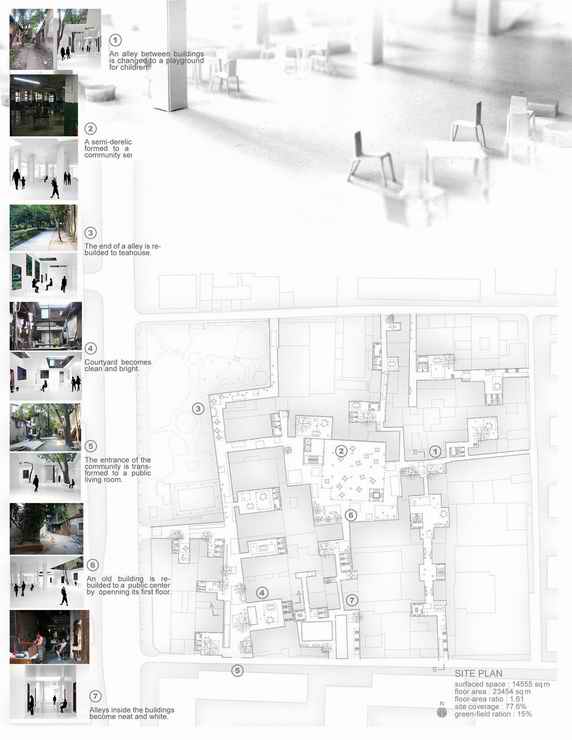 本作品为“古街区”改造作品集(部分),经过我公司建筑学顾问进行作品辅导后,成功被康奈尔大学建筑学硕士录取。