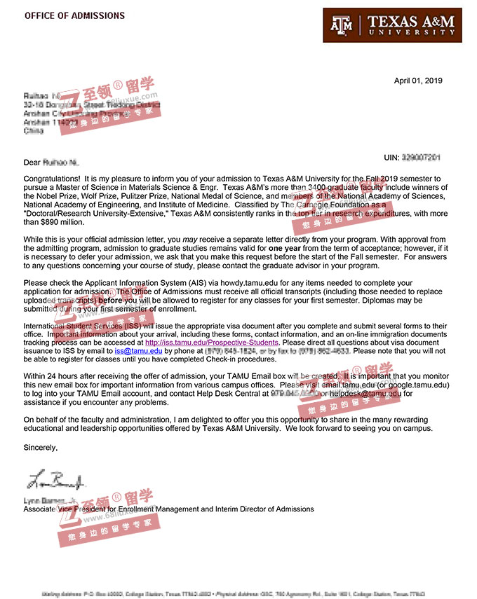 录取结果:TEXAS A&M University ,MS in Materials Science and Engineering德州农工大学材料工程硕士