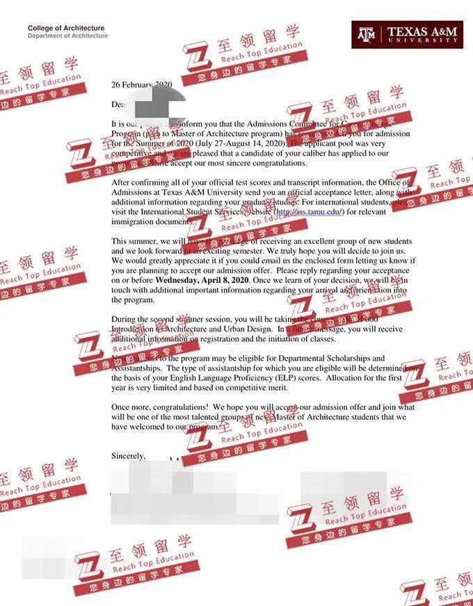 录取结果:Texas A&M University,Master of Architecture德州农工大学建筑学硕士录取
