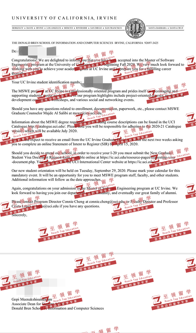 录取结果:UC - Irvine,Master of Software Engineering加州大学欧文分校软件工程硕士录取